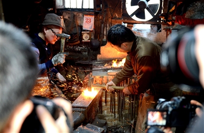 http://m.shqianxie.com/pic/201902/25/c290877f-278f-4b48-af44-8bfca934ec83.jpg 2月23日,魏都區(qū)高橋營街道辦事處大羅莊社區(qū),攝影師在拍攝羅福太(后排左)父子打鐵場景。當(dāng)日,許昌市金融攝影家協(xié)會組織20余名攝影師來到大羅莊社區(qū),對我市的“非遺”項目——魏都區(qū)傳統(tǒng)菜刀制作技藝進行全程拍攝,用鏡頭留住文化。記者 牛志勇 攝 http://m.shqianxie.com/pic/201902/25/c290877f-278f-4b48-af44-8bfca934ec83.jpg