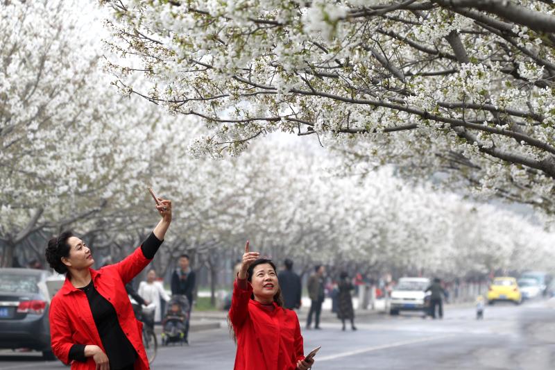 3月20日,市民和游客在許昌學院櫻花大道上觀賞櫻花。近日,隨著天氣轉暖,許昌學院櫻花大道上的櫻花綻放如雪,一派春意盎然的景象。今日,許昌學院第三屆“櫻花文化節(jié)”開幕,其間將舉辦“千色競秀”繪櫻花、“心靈手巧”櫻花工藝品展示、“浪漫櫻花”舞動青春等活動,讓市民、游客及師生不僅看到櫻花之美,領略高校獨特的文化品位和文化氛圍。