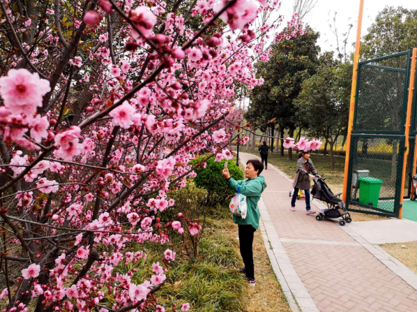 “東風(fēng)攜得嬌春歸,吹綻滿樹美人梅。不喚蜂蝶枝頭鬧,賺來山人文思飛?!弊罱▋捍蔚诰`放,將蓮城裝扮成了花的海洋。美人梅就是其中之一。美人梅原產(chǎn)于法國(guó),由紅葉李與重瓣宮粉型梅花雜交后選育而成,屬于花中的“混血兒”,兼具兩者特性。美人梅的花比較鮮艷,花瓣層層疊疊,像蝴蝶翩翩飛舞,看起來頗具大家閨秀之風(fēng)姿,因此得名(如圖)。