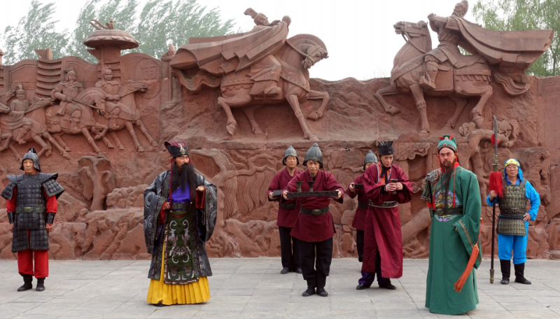 4月9日,演員在灞陵橋景區(qū)表演大型情景劇《灞陵相送》?!跺绷晗嗨汀繁憩F(xiàn)出曹操的愛(ài)才惜將、關(guān)羽的忠貞大義,在灞陵橋景區(qū)常演不衰。該景區(qū)為配合中國(guó)許昌第十三屆三國(guó)文化旅游周,對(duì)其進(jìn)行了加工整理,使其藝術(shù)水準(zhǔn)有了新的提高,成為本屆三國(guó)文化旅游周的新亮點(diǎn)。