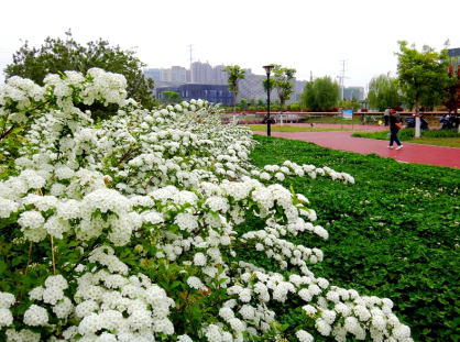 本報(bào)訊 (記者 張漢杰 文/圖) 雖說“人間四月芳菲盡”,但是此時(shí)是繡球繡線菊盛開的時(shí)節(jié)。這兩天,在市區(qū)中央公園萬通街以北,上千株繡球繡線菊逐漸盛開,層層疊疊的白色花朵就像許多小雪球(如圖)。
