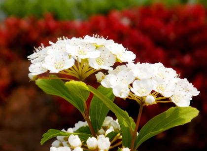 繡球繡線菊又稱珍珠繡球,是薔薇科繡線菊屬落葉灌木。其花朵的傘形花序有總梗,具花10朵至25朵;萼片呈三角形,花瓣呈白色?;ǘ湫∏擅芗?,布滿枝頭,宛若串串珍珠,又如積雪。