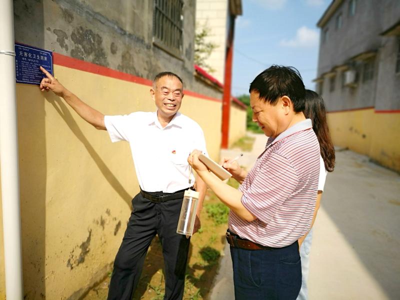 8月9日,鄢陵縣馬坊鎮(zhèn)汪樓村67歲的村黨支部書記谷建亭在村民家的圍墻外,挨個兒查看各家“廁所革命”完成后,防爆管安裝和化糞池硬化的情況。
