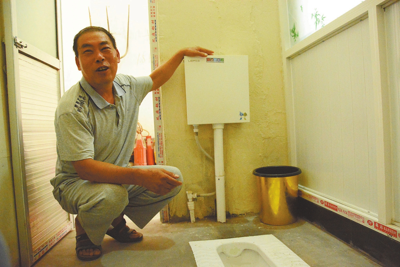手指輕輕一按,“嘩啦”一聲,污物通過便池順流而下。 “往年一到夏天,蚊蠅成群結隊,現(xiàn)在你看,可干凈,俺全家很滿意!”8月14日下午,在襄城縣潁陽鎮(zhèn)管武村,55歲的村民韓學成說起自己家新安裝的按壓式抽水馬桶時,笑得合不攏嘴。