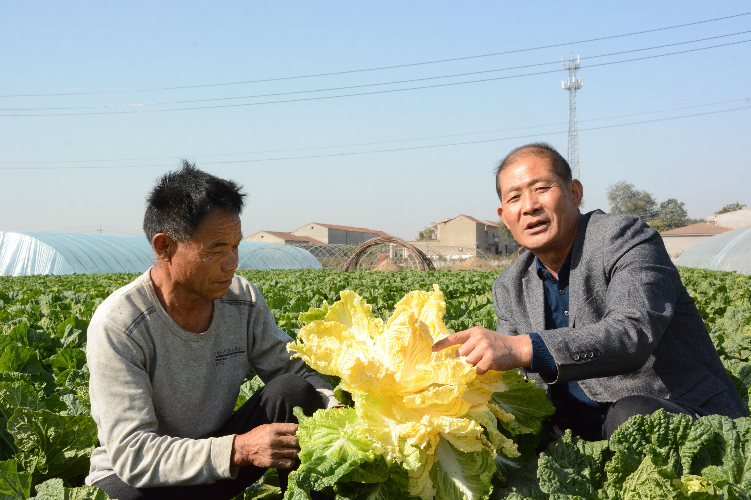 10月31日,碧空如洗。在鄢陵縣馬坊鎮(zhèn)崗河涯村的菜地里,村民三三兩兩地正在干活兒。該村黨支部書記鄭海亮和支部委員鄭全亮走在田間地頭,不時詢問村民蔬菜的長勢。