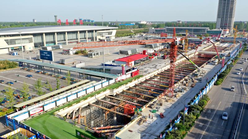 圖為5月8日拍攝的鄭許市域鐵路許昌東站加緊施工現(xiàn)場(chǎng)。鄭許市域鐵路(許昌段)項(xiàng)目北起鄭州、許昌市界,南端止于許昌東站,全長33.7公里,沿途設(shè)站11座,工程設(shè)計(jì)時(shí)速120公里,計(jì)劃2020年12月6日通車運(yùn)營。