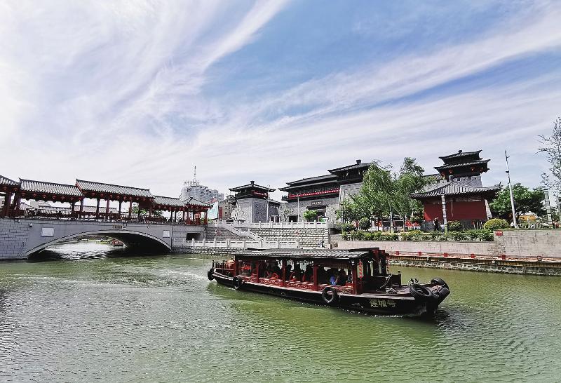 5月26日,在市區(qū)護(hù)城河南段,市民乘坐仿古游船觀光游覽,一幅宜居之城的美麗畫卷徐徐展開。如今,魏都區(qū)通過深入開展大氣污染防治工作,城區(qū)天更藍(lán)、水更清、地更綠,空氣質(zhì)量得到明顯改善。 本報(bào)記者 喬利峰 攝