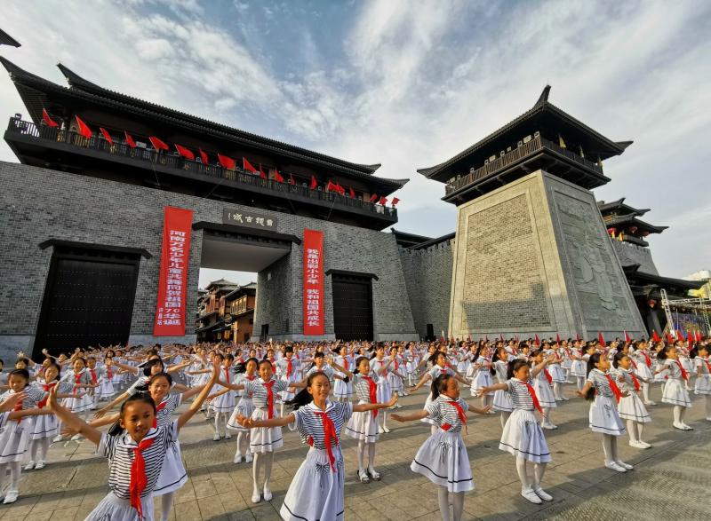 5月30日,“我是出彩小少年,我和祖國共成長——河南萬名少年兒童共舞同賀新中國70華誕”許昌站活動在曹魏古城南門廣場舉行。當(dāng)天,魏都區(qū)文化街小學(xué)的500名學(xué)生參加了表演。此次活動旨在唱響愛黨愛國愛社會主義主旋律,讓廣大少年兒童共享祖國的榮光、感受生活的美好,爭做時(shí)代新人。 本報(bào)記者 喬利峰 攝