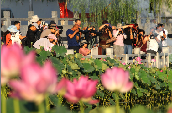 7月1日,大批攝影愛(ài)好者在護(hù)城河畔拍攝荷花。近期,市區(qū)護(hù)城河內(nèi)的荷花競(jìng)相開(kāi)放,散發(fā)出陣陣清香,盡顯都市荷塘的美景,吸引眾多市民和游客前來(lái)觀賞。據(jù)悉,今年,護(hù)城河內(nèi)種植了9種荷花、4種睡蓮,面積達(dá)2.3萬(wàn)平方米。記者 牛書(shū)培 攝 ?