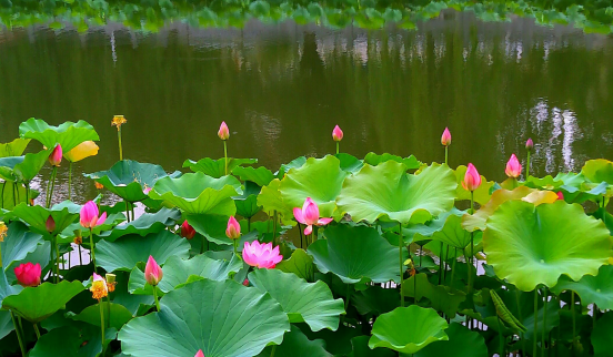 各色荷花散發(fā)出陣陣清香,與綠柳相映成趣,成為蓮城美麗的風(fēng)景。