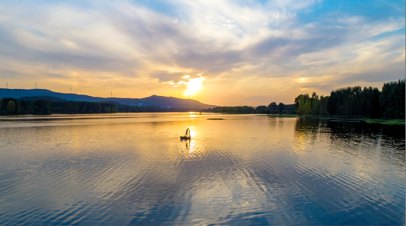 秋韻藏在泛著漣漪的水面上,金色的陽光給湖水涂上了一層神秘的色彩,令人沉醉。