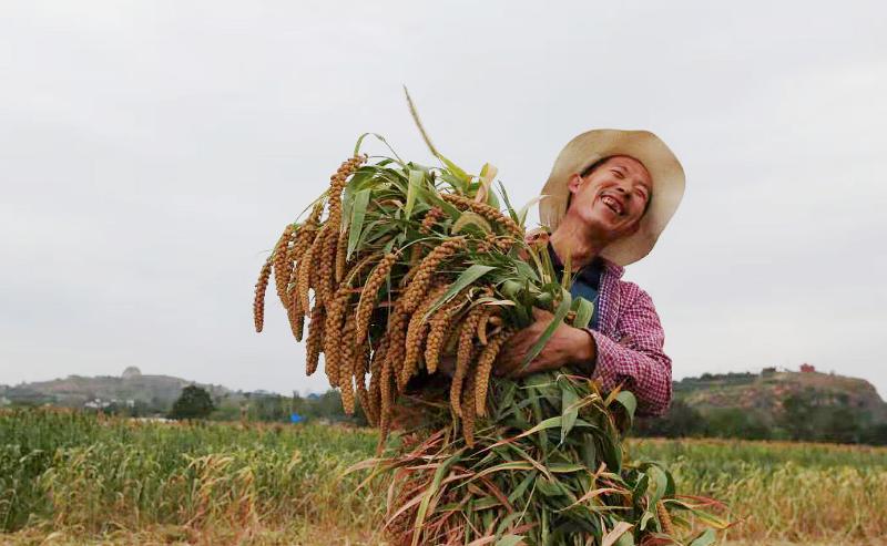9月16日,禹州市無梁鎮(zhèn)大木廠村七組村民任丙偉在收割3畝多地的谷子,臉上露出開心的笑容。 大木廠村位居山崗地區(qū)。全村227戶940口人,有2300畝山崗地,是省級深度貧困村。去年以來,駐村工作隊指導(dǎo)該村因地制宜調(diào)整種植結(jié)構(gòu),試種良種谷子成功,農(nóng)民收益大幅度提高,今年全村大面積種植谷子再獲豐收。