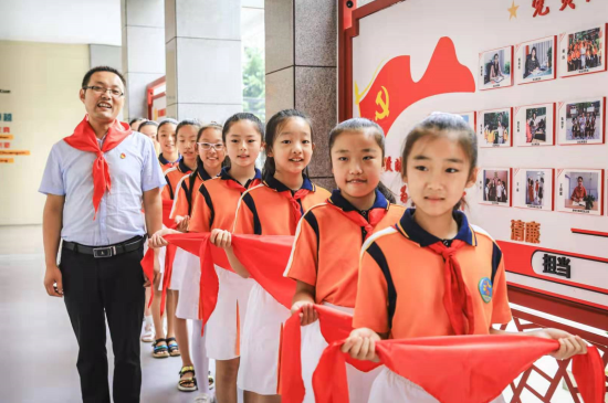 初入學(xué)的少年,手托紅領(lǐng)巾,載滿理想準備揚帆啟航。