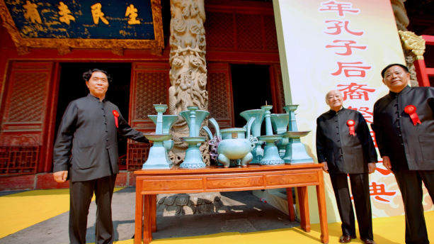 http://m.shqianxie.com/pic/201910/08/bbf3219c-3631-4f1e-88ec-6b68eaa940a0e147be57-dcbd-40b5-ad85-512731308b48.png 9月28日,在孔子故里山東曲阜,海內(nèi)外500多名孔子后裔代表齊聚孔廟,舉行家祭活動(dòng),紀(jì)念孔子2570周年誕辰?;顒?dòng)現(xiàn)場(chǎng),由中國(guó)工藝美術(shù)大師孔相卿(左一)制作的“鈞瓷珍品五供”替換清雍正御賜的“銅胎畫(huà)琺瑯五供”,放入大成殿。據(jù)悉,作為孔子第74代后裔,孔相卿緬懷祖上恩德,多年構(gòu)思制作“鈞瓷五供重器”。 記者 牛書(shū)培 攝 http://m.shqianxie.com/pic/201910/08/bbf3219c-3631-4f1e-88ec-6b68eaa940a0e147be57-dcbd-40b5-ad85-512731308b48.png