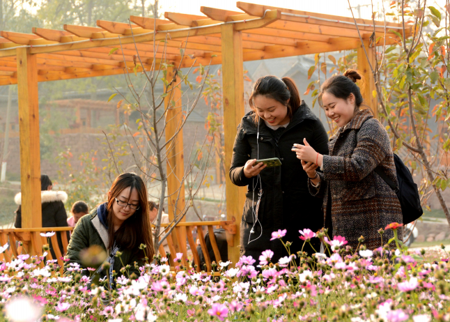 11月23日,游客在襄城縣紫云鎮(zhèn)雷洞村游玩。當(dāng)日,天氣晴好,不少游客驅(qū)車來到省級鄉(xiāng)村旅游特色村、我市鄉(xiāng)村旅游“網(wǎng)紅村”——雷洞村,領(lǐng)略紅石磙、紅石獅、紅石桌、紅石凳、紅磨盤的魅力。紫云山上多種山花競相開放,仙翁湖中碧波蕩漾……人們在這里仿佛置身于一幅美麗的山水畫。 記者 孫學(xué)濤 攝