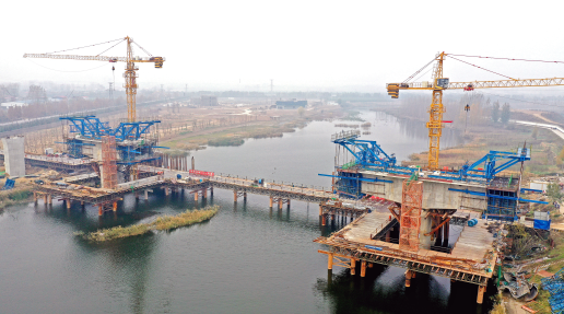鄭許市域鐵路跨雙洎河橋加緊施工