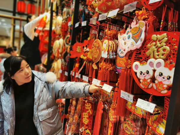 春節(jié)臨近,年味漸濃。2020年是鼠年,以生肖鼠為主題的新年飾品格外搶眼。在市區(qū)胖東來生活廣場,貨架上的生肖鼠掛件、布藝物件等成為熱銷商品。 記者 毛迎 攝 ?