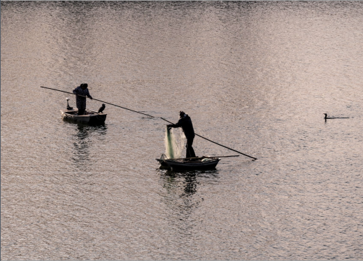船兒悠悠,漁民正在撒網(wǎng),靜謐與希望的氣息透過畫面?zhèn)鬟f開來。