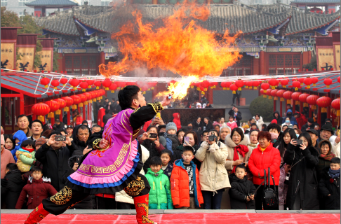 1月17日上午,演員在灞陵橋新春大廟會(huì)表演噴火。當(dāng)日,第七屆灞陵橋新春廟會(huì)開幕。據(jù)悉,為滿足游客的旅游需求,春節(jié)期間,我市將立足自身優(yōu)勢(shì),充分發(fā)掘民俗文化、生態(tài)環(huán)境、節(jié)慶活動(dòng)、特色美食等各類資源,集中推出一系列年味兒十足的民俗文化旅游活動(dòng)。記者 牛書培 攝