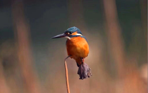鳥兒立在枯荷上,似乎被充滿詩意的枯荷吸引,不禁冥想、靜思。