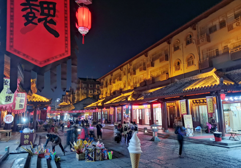 1月20日晚,市民在市區(qū)曹魏古城游玩。春節(jié)臨近,曹魏古城夜景迷人,充滿了節(jié)日氣氛,來這里游玩的市民逐漸增多。 記者 黃增瑞 攝 ?