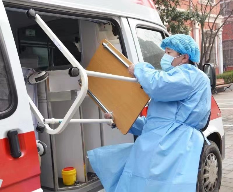 “有8名重癥患者,還有一些失能老人,轉(zhuǎn)運(yùn)起來難度較大?!痹撛簶I(yè)務(wù)副院長孟惠嬋說。該院采取“多對一”的方式轉(zhuǎn)運(yùn)重癥患者,每名患者一輛救護(hù)車,車上有醫(yī)護(hù)團(tuán)隊(duì)跟隨。