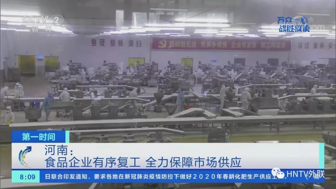 作為全國最大的肉類食品、速凍食品、方便面等食品生產(chǎn)加工基地,河南省在做好防控工作的前提下,全力支持和組織推動(dòng)各類食品生產(chǎn)企業(yè)復(fù)工復(fù)產(chǎn),全力保障市場(chǎng)食品物資供應(yīng)。