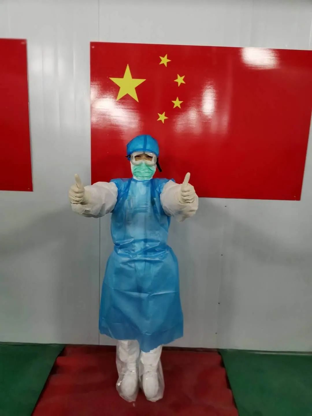 不怕被笑話,剛進(jìn)艙的那次值班我印象挺深刻,查完房一圈下來(lái),可能是話說(shuō)太多,感覺(jué)心慌、上不來(lái)氣;加上護(hù)目鏡戴得緊,像緊箍咒一樣,頭疼的厲害。幾次吐出來(lái),我都咽了下去。因?yàn)椴荒芪廴究谡?,不想浪費(fèi)這身防護(hù)服。戴上護(hù)目鏡,汗水順著發(fā)髻、臉頰往下流,一眨眼、一張嘴都是咸咸的,有時(shí)甚至連鼻涕都流進(jìn)了嘴里。感謝隊(duì)友的幫助,最難熬的時(shí)候,我們手拉手,相互鼓勵(lì)。也感謝患者的支持,這些都是工作上的“小確幸”。