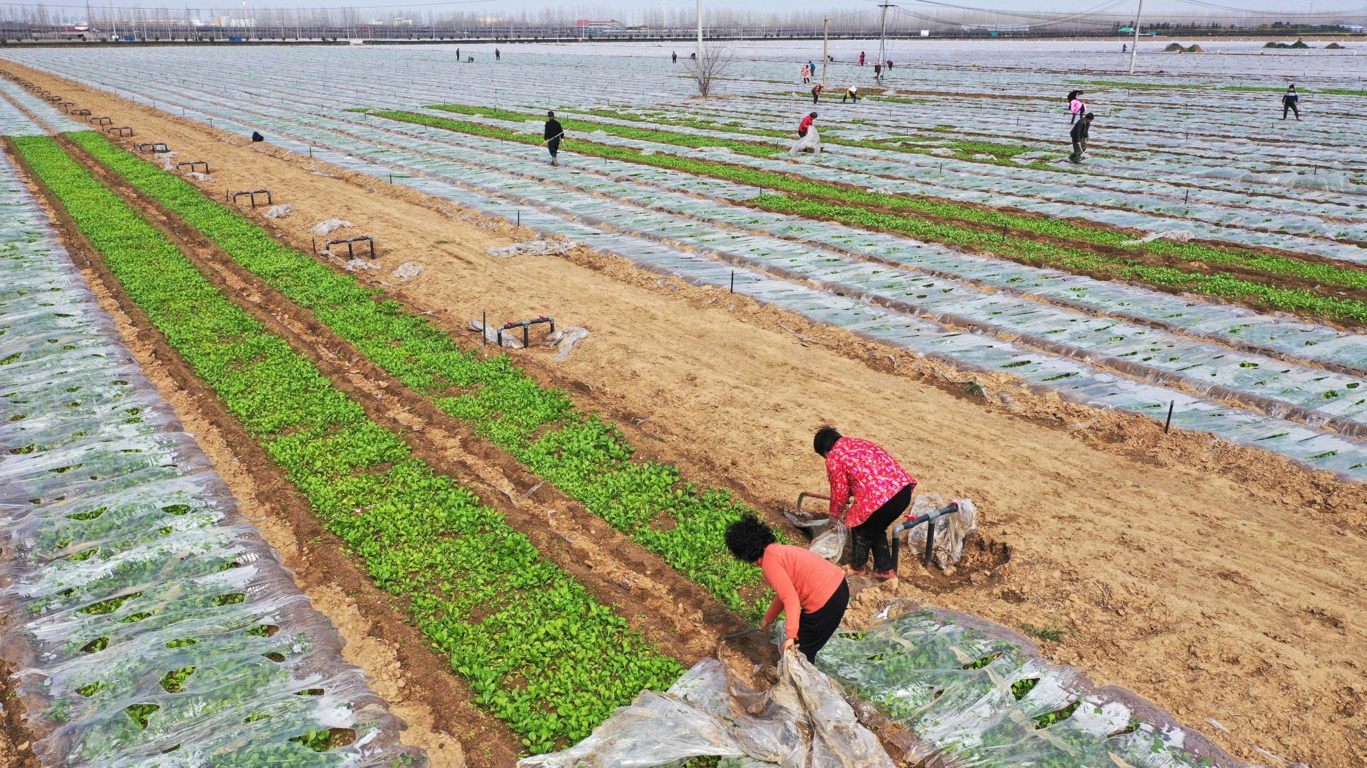 3月4日,在位于建安區(qū)將官池鎮(zhèn)的河南天和農(nóng)業(yè)股份有限公司供港蔬菜基地,工人們正在為早熟蔬菜去除薄膜。近日,我市多家農(nóng)業(yè)公司在抓好疫情防控的同時(shí)力保企業(yè)生產(chǎn),田間春意濃濃,一片繁忙景象。許昌報(bào)業(yè)全媒體記者 牛書(shū)培 攝