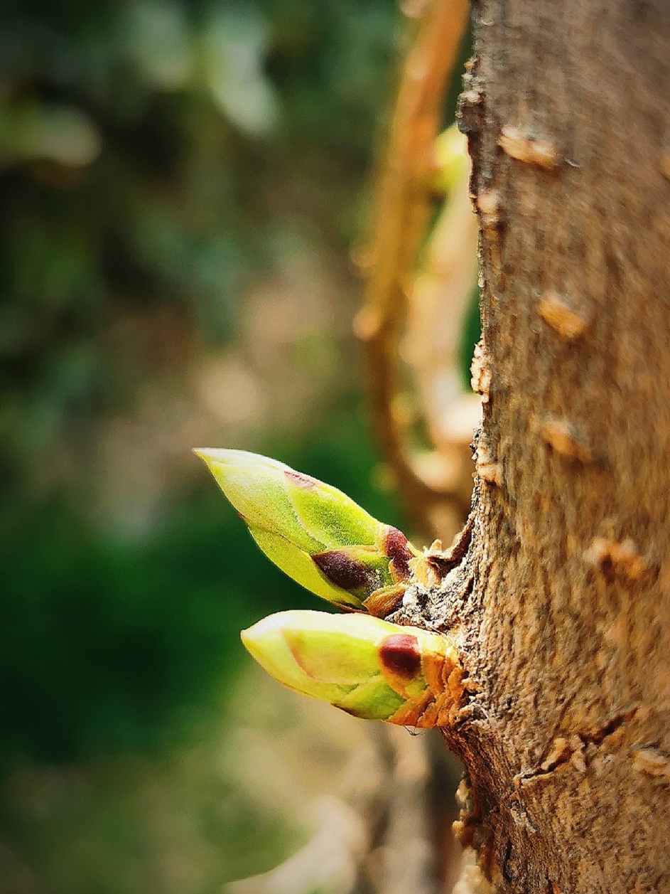 市區(qū)春秋廣場,海棠樹發(fā)出新芽。 記者 毛迎 攝