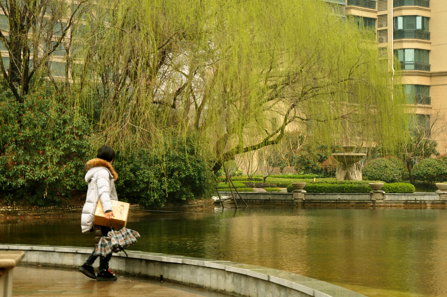 3月9日,在東城區(qū)一小區(qū)內(nèi),市民欣賞雨后春色。當(dāng)天,許昌喜降春雨,城市變得更加清秀。 記者 賈同嶺 攝