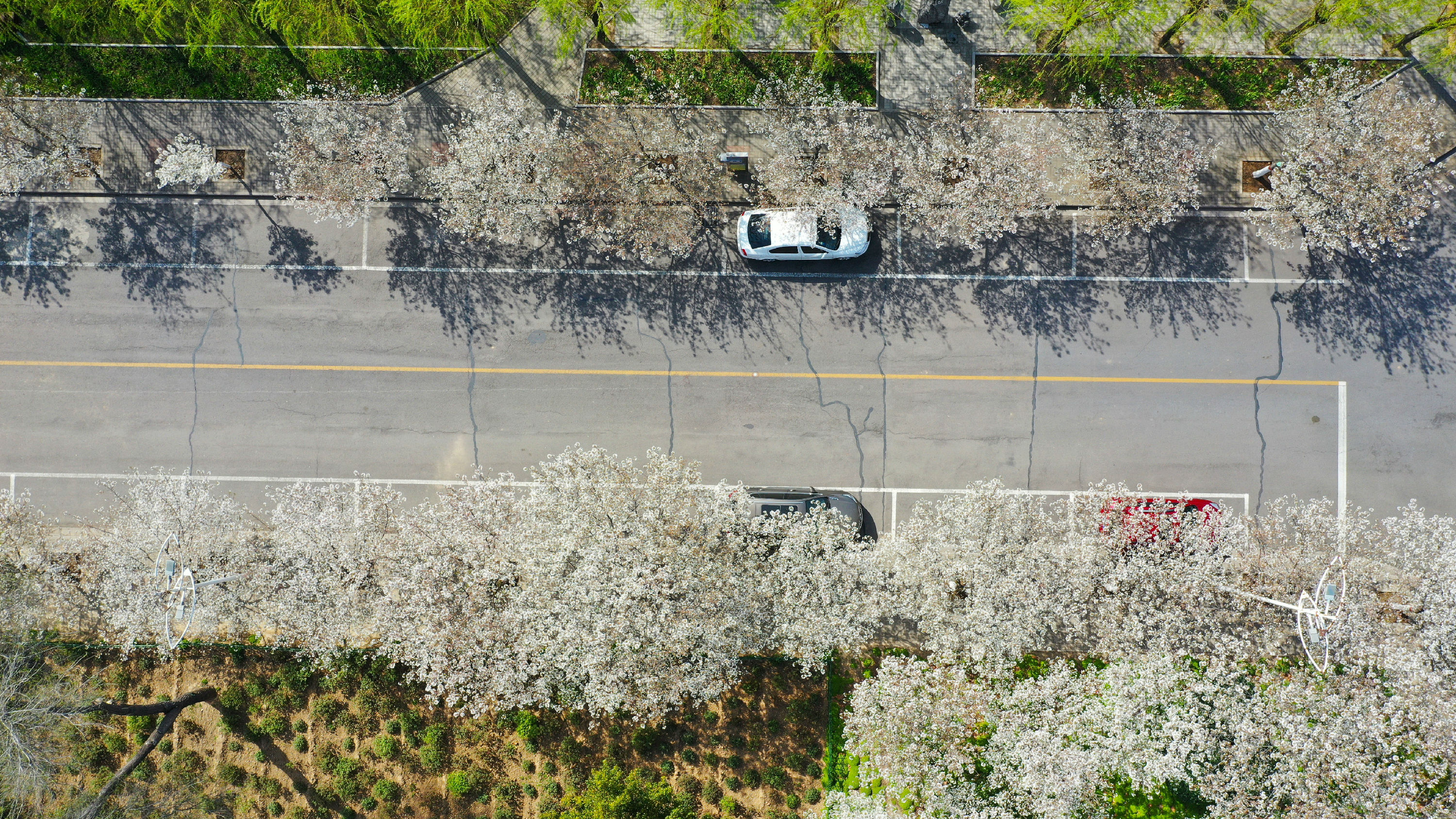無人機(jī)飛過“櫻花大道”,記錄下繁花似錦的美景