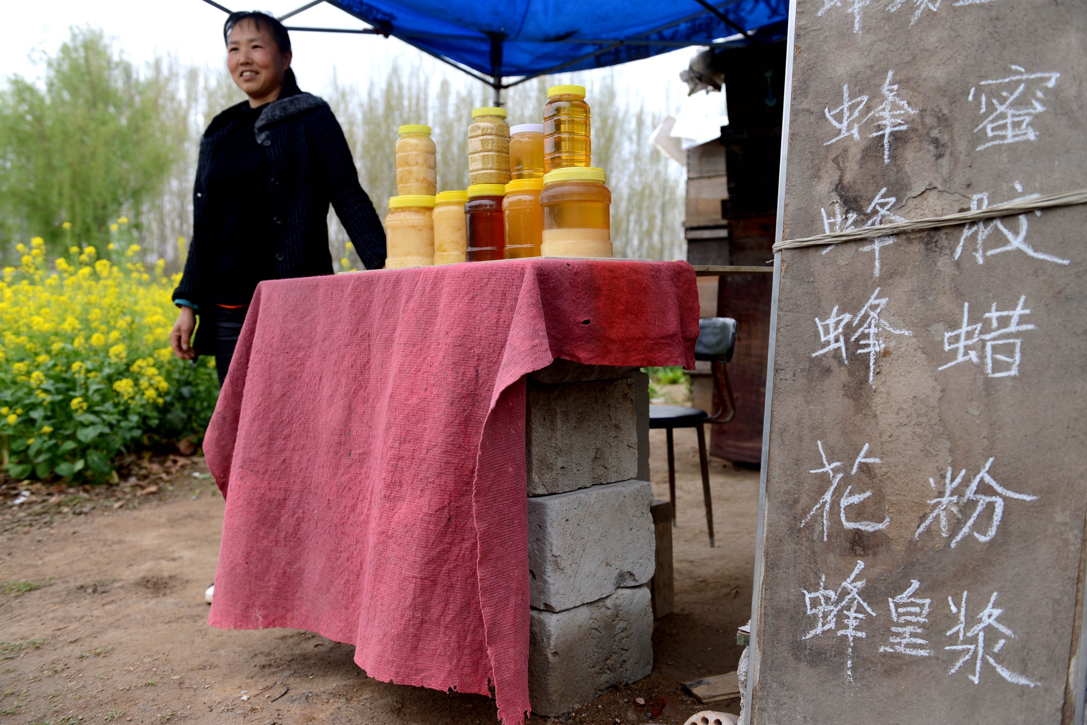 http://m.shqianxie.com/pic/202003/31/52d89e1c-efb4-4f37-8beb-55e9645db0144733f09e-ea75-455e-a6fc-237f2aae66b7.jpg 鄭廣秀在售賣自家產(chǎn)的蜂蜜。 記者 牛志勇 攝 http://m.shqianxie.com/pic/202003/31/52d89e1c-efb4-4f37-8beb-55e9645db0144733f09e-ea75-455e-a6fc-237f2aae66b7.jpg