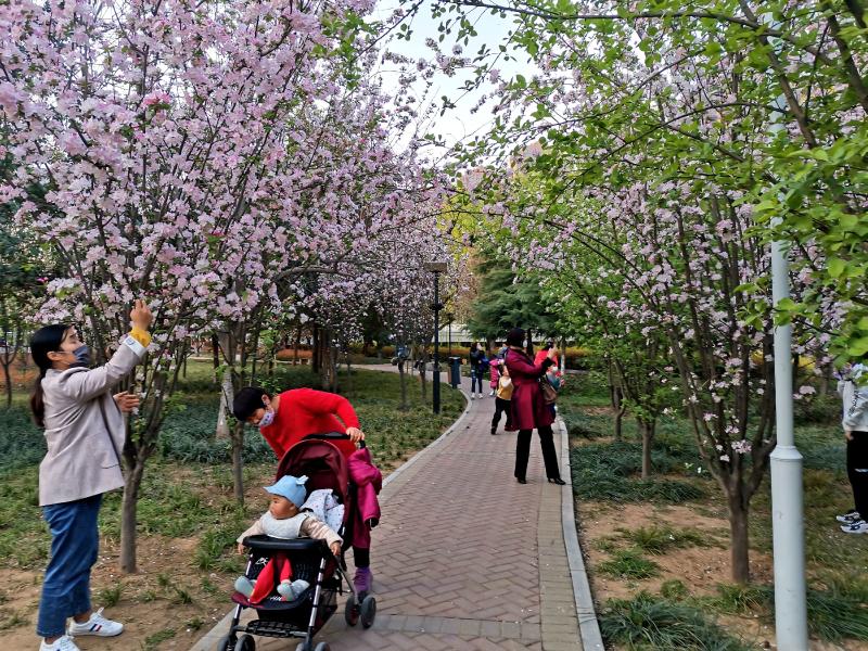 3月31日,市區(qū)中央公園內(nèi),市民在盛開(kāi)的針葉天藍(lán)繡球旁游玩。針葉天藍(lán)繡球的花瓣形似櫻花,顏色有濃粉色、淡粉色等,絢麗多彩。如今,中央公園內(nèi)春色正好,每天都會(huì)吸引大量市民前來(lái)游玩。 記者 牛志勇 攝