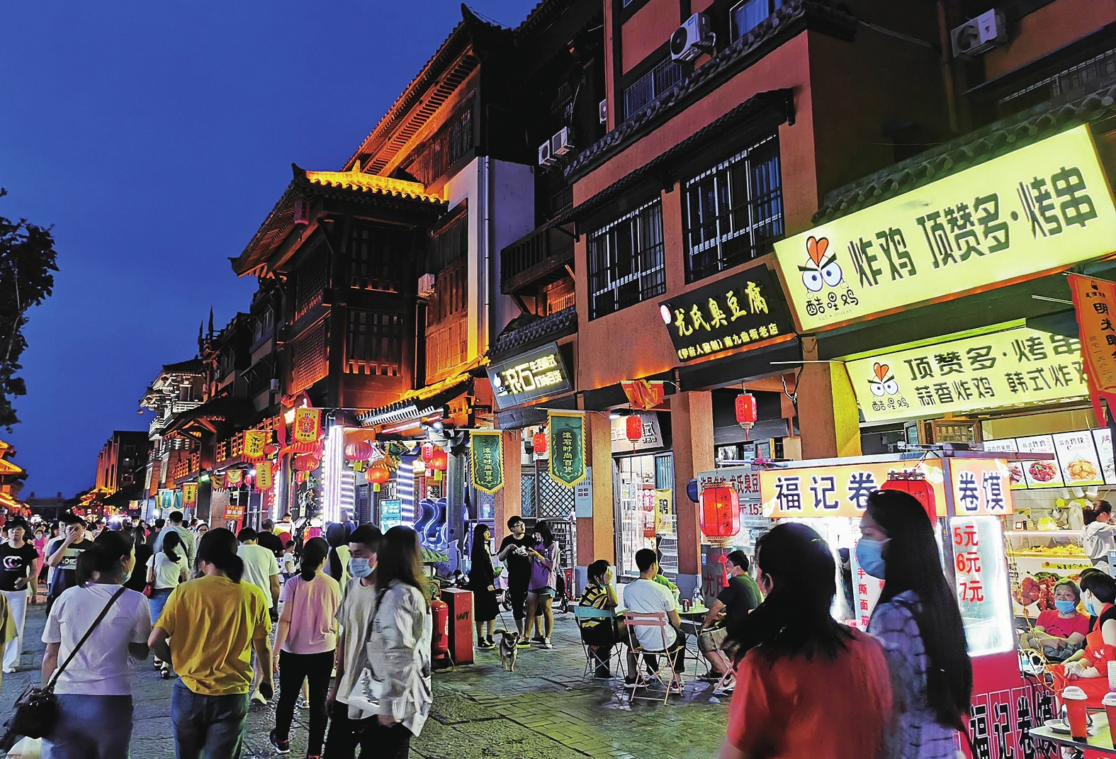 夜幕降臨,市區(qū)夜市煙火升騰,人流熙熙攘攘。 本報(bào)記者 喬利峰 攝