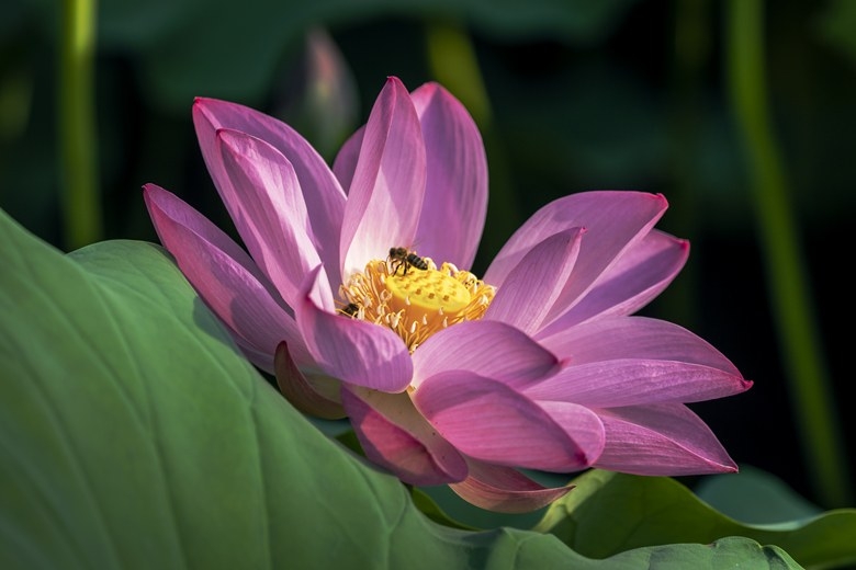 迎露紅荷花盛開,蜜蜂聞沁逐香來??蓯鄣男∶鄯湮鑴?dòng)著金色的翅膀,在荷塘里不知疲倦地忙碌著,采摘著香甜的花蜜。 晨報(bào)攝友 楊望祥 攝