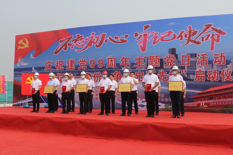 儀式上,組織全體黨員重溫了入黨誓詞,并通報表彰了中鐵十六局等4家單位8個先進(jìn)基層黨支部、11名優(yōu)秀黨務(wù)工作者、26名優(yōu)秀共產(chǎn)黨員。趙偉業(yè)宣布“牢記第一身份,爭做出彩先鋒”主題活動正式啟動并對全體參施員工提出三點要求,突出黨員第一身份教育,動員廣大黨員、青年充分發(fā)揮主力軍作用,把疫情耽誤的時間搶回來,把疫情造成的損失奪回來;充分發(fā)揮黨組織的戰(zhàn)斗堡壘作用,以高質(zhì)量黨建助推中心工作發(fā)展,筑牢疫情防控“紅色堡壘”,凝聚生產(chǎn)建設(shè)“硬核”力量;加強(qiáng)組織領(lǐng)導(dǎo),在項目施工建設(shè)、疫情防控等重點工作中廣泛開展崗位練兵、技能比武、創(chuàng)優(yōu)爭先等活動,比忠誠、比學(xué)習(xí)、比擔(dān)當(dāng)、比作風(fēng)、比實績,爭當(dāng)出彩先鋒,全面統(tǒng)籌謀劃促進(jìn)本次活動落實落細(xì)落地。