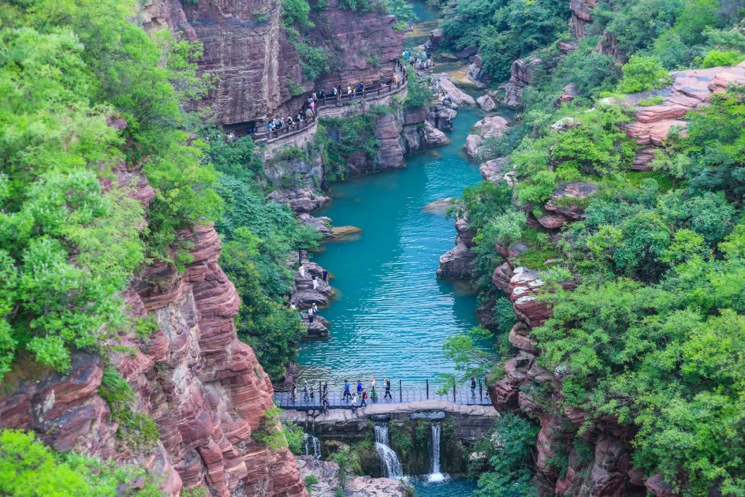 風清水綠,高山蒼翠,紅巖嬌艷,飛瀑靈動