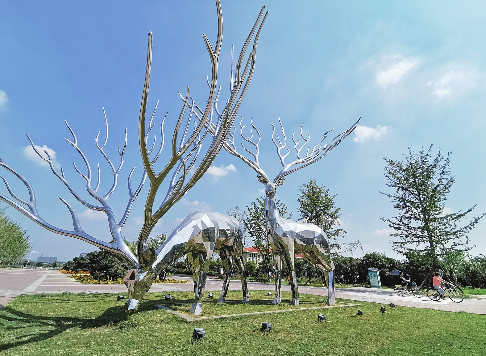 7月20日,市民在市區(qū)鹿鳴湖大型不銹鋼天鹿雕塑旁經(jīng)過。城市雕塑被喻為“城市靈魂”和“讀城”亮點(diǎn),不僅是城市文化與文明的重要標(biāo)志,也是展現(xiàn)城市歷史文化、時(shí)代風(fēng)貌和精神內(nèi)涵的重要窗口。在全國(guó)文明城市創(chuàng)建中,我市建設(shè)了一批凸顯地域特色的經(jīng)典性元素城市雕塑,城區(qū)街頭、廣場(chǎng)和游園等處的雕塑越來(lái)越多,不僅展現(xiàn)了城市的文化內(nèi)涵,而且提升了城市品位。 本報(bào)記者 喬利峰 攝