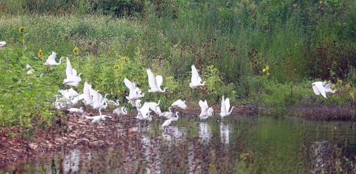 數(shù)十只白鷺在水邊嬉戲。 晨報(bào)攝友高文勝攝