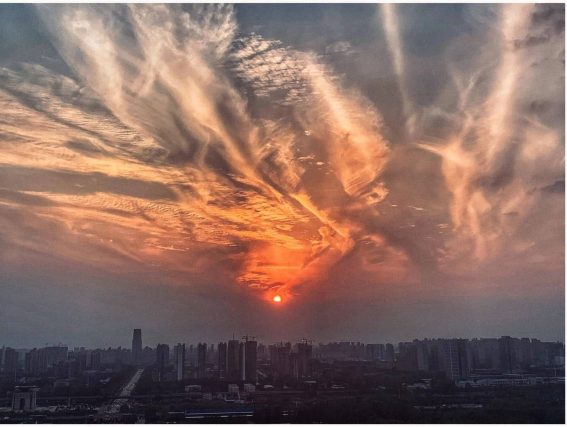 ? 圖片攝于9月12日傍晚。 太陽(yáng)收起了它那刺眼的光芒,變成了一個(gè)金燦燦的圓。天空中有幾處淡淡的云層。云層襯托著金光閃閃的晚霞,華美而壯觀。 晨報(bào)攝友 王躍民 攝