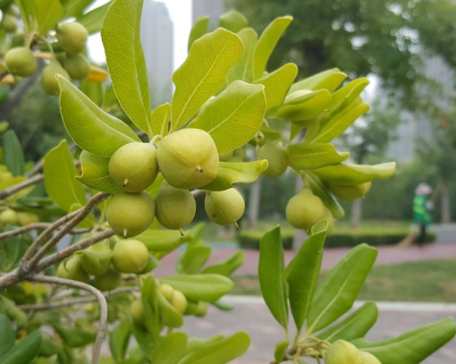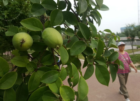 秋天是收獲的季節(jié)。公園、游園里,海棠、木瓜、石榴、山楂等掛滿枝頭,給城市增添了濃郁的田園氣息。