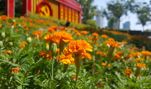 9月24日,記者行走在市區(qū)街頭,不時(shí)有金黃色的萬(wàn)壽菊、繽紛的格?;ㄓ橙胙酆?。一片片花草掩映的綠地,一座座風(fēng)景如畫的公園,一處處優(yōu)雅別致的園林小景,讓整個(gè)城市生機(jī)勃勃、美不勝收。