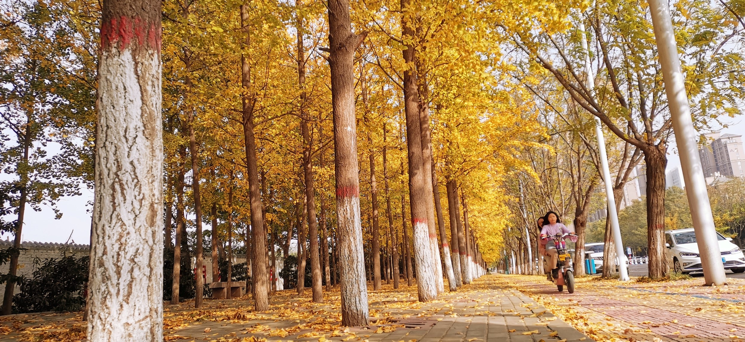 11月2日,市區(qū)陽光明媚,在新東街旁,銀杏葉似黃蝶飛舞,落到地上鋪成了金黃色的地毯。 記者 張大弓 攝