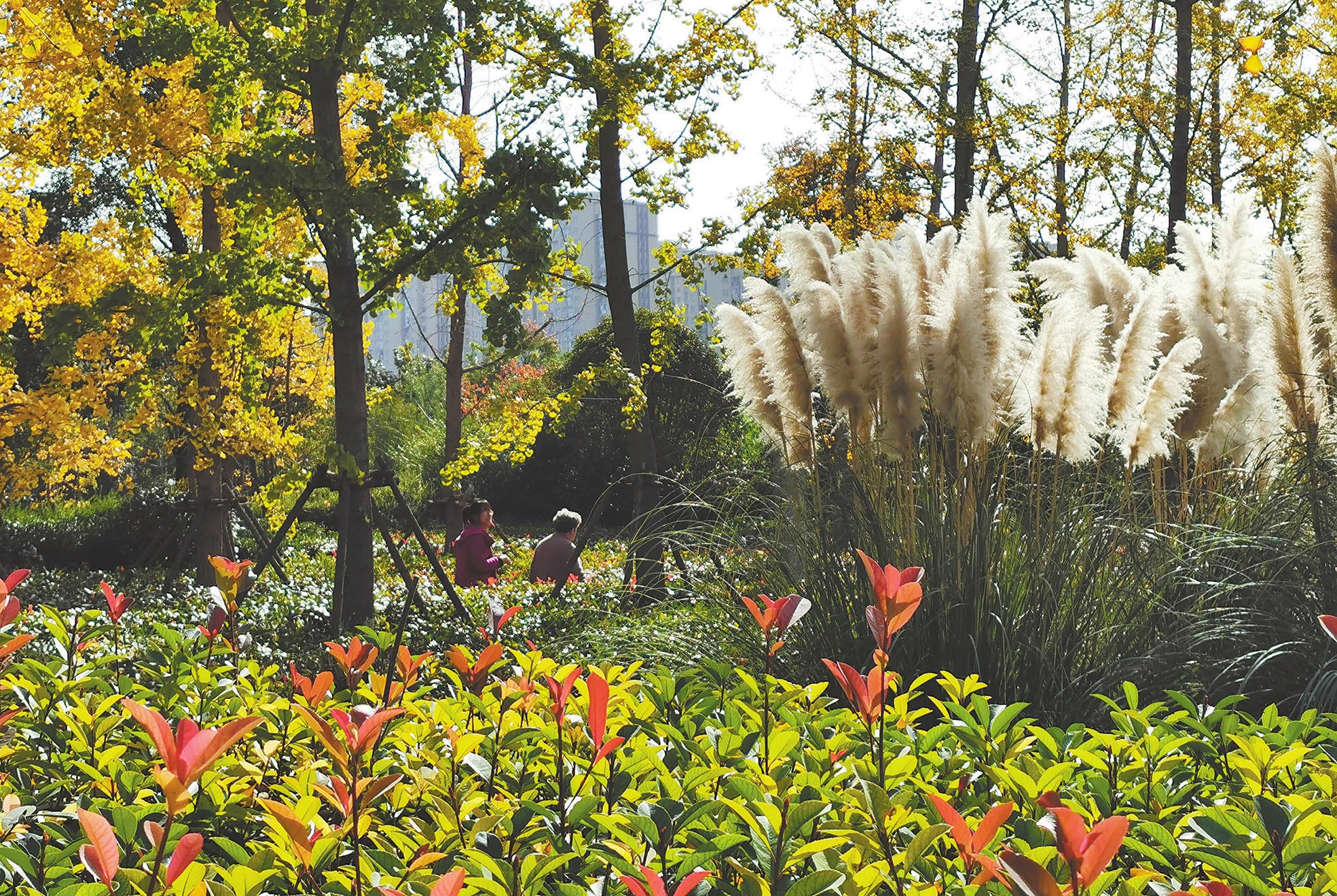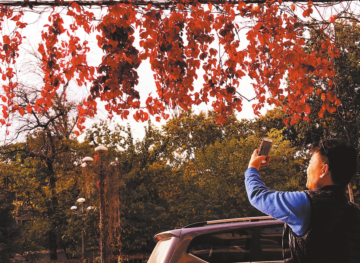 深秋時(shí)節(jié),許昌市區(qū)的公園、游園、景觀道路處處姹紫嫣紅、秋韻盎然,讓人爽心悅目。圖為11月2日市民在市區(qū)五一路北段拍攝美景。 呂超峰 攝