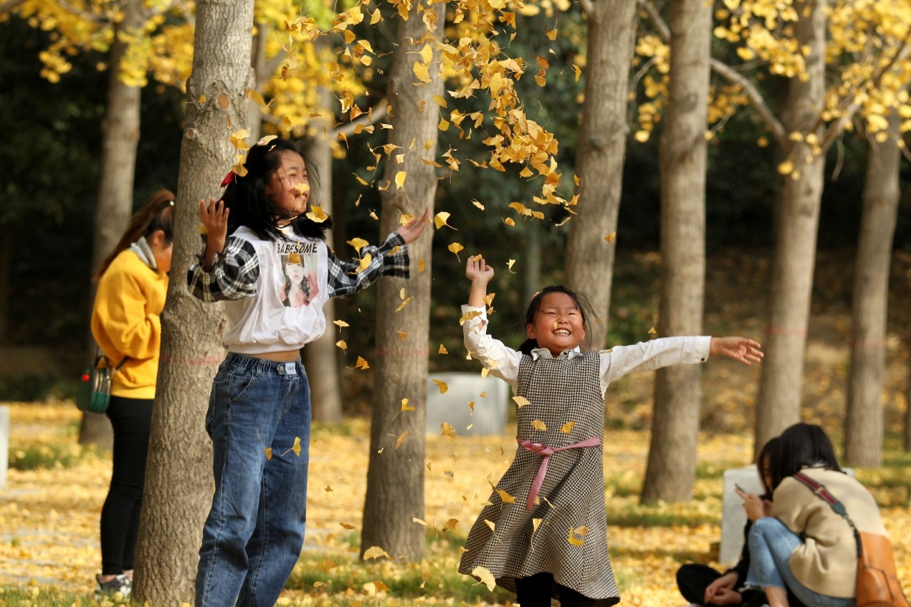 11月15日,小朋友在建安區(qū)銀杏廣場(chǎng)玩耍。初冬時(shí)節(jié),銀杏葉金黃、楓葉紅艷,樹(shù)木呈現(xiàn)出另一副模樣,將城市裝點(diǎn)得更加美麗。今年,我市對(duì)5個(gè)游園、廣場(chǎng)和10個(gè)路段實(shí)行落葉緩掃,并進(jìn)行動(dòng)態(tài)管理,盡顯一座城市的詩(shī)意與溫度。記者在采訪中看到,不少市民舉起手機(jī)、相機(jī),拍下一年中最美的景致,和家人、朋友分享。 記者 牛書(shū)培 攝