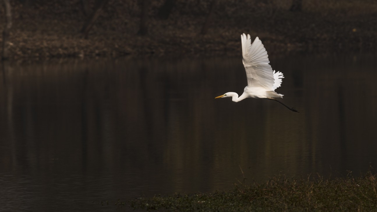 夜色漸濃,或飛翔于水面或歇息于草地的鳥兒帶來了靈動之美。滿樹金黃的銀杏將周圍的地面裝扮得俏麗多姿。初冬的夜晚,璀璨的燈光與奔馳的車輛透出濃濃的煙火氣息,溫暖著夜晚歸家的人。