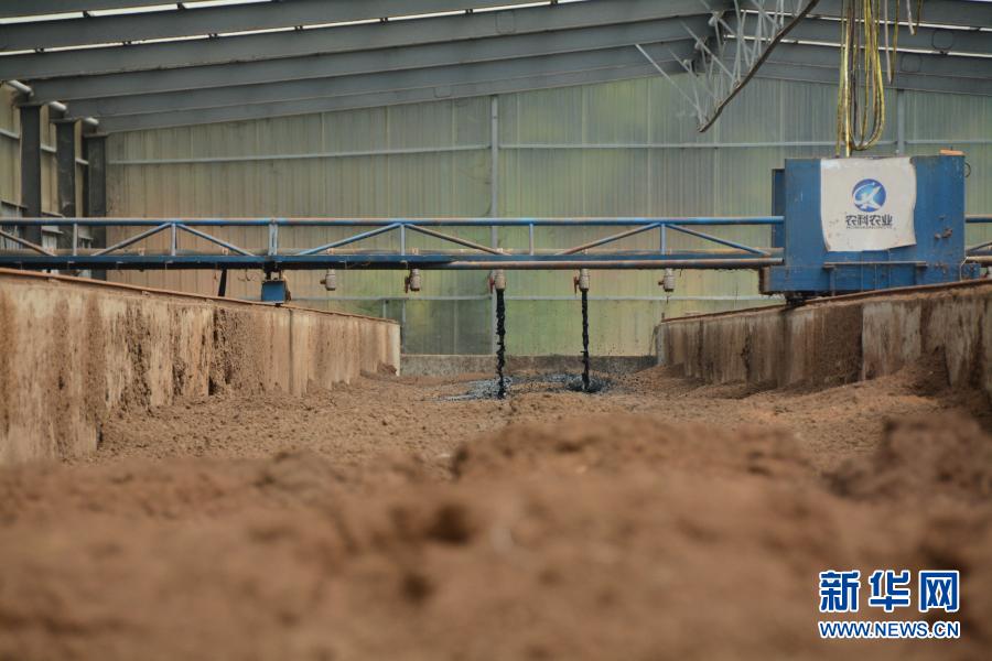 在福建省福清市永誠(chéng)華多種豬公司豬場(chǎng)內(nèi),半自動(dòng)化機(jī)械將收集的養(yǎng)殖糞污噴灑至墊料上。這是福建首創(chuàng)的“異位發(fā)酵床”技術(shù),發(fā)酵后的糞污可以作為有機(jī)肥源,并可以讓養(yǎng)殖場(chǎng)實(shí)現(xiàn)污染“零排放”(2019年8月12日攝)。新華社記者 林超 攝
