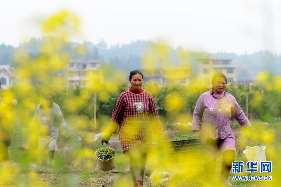 2月15日,貴州省黎平縣中潮鎮(zhèn)農(nóng)民在栽種菜苗。新華社發(fā)(楊代富 攝)