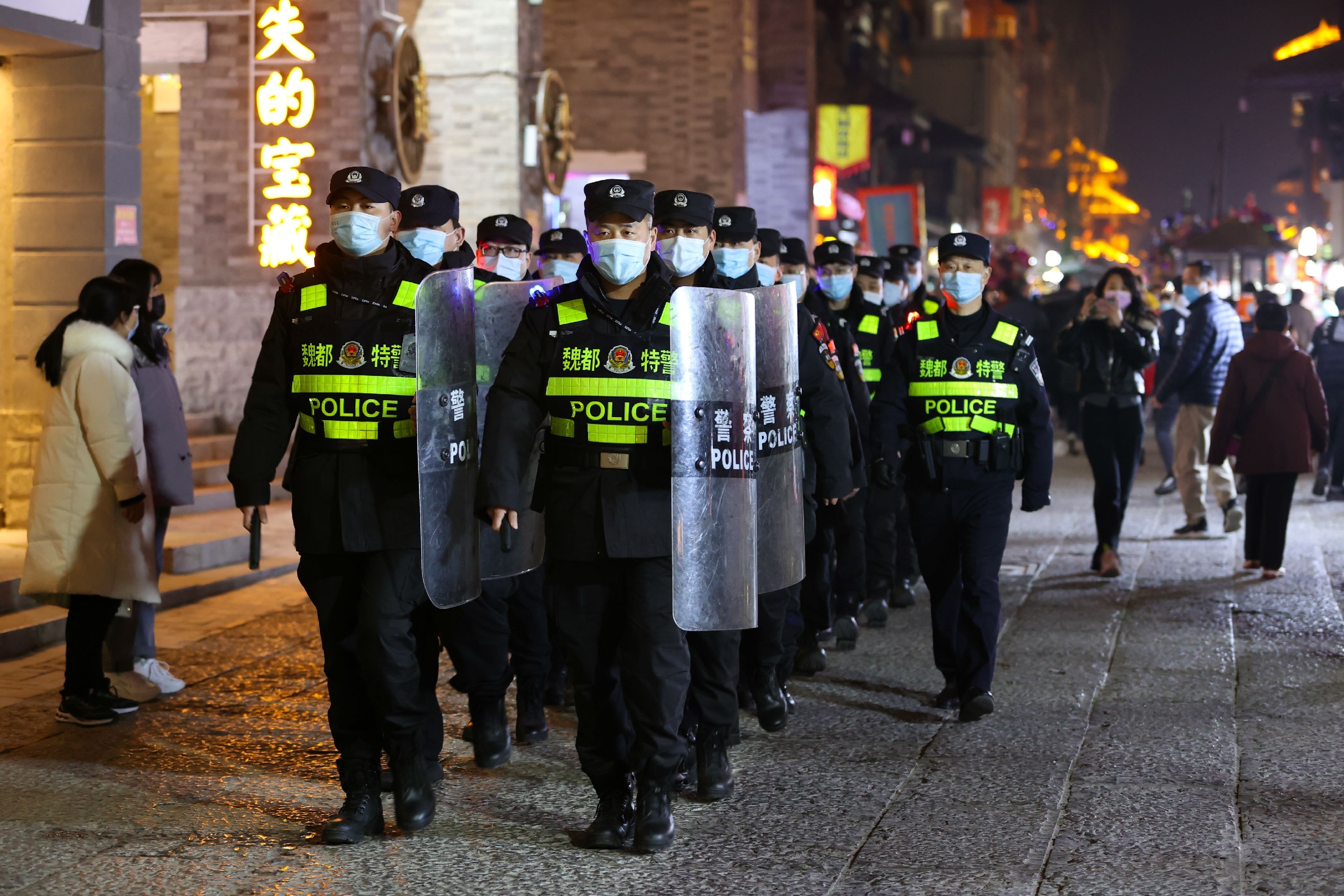 2月15日晚,民警在曹魏古城巡邏。“春節(jié)不打烊”“過年不掉線”,春節(jié)期間,許昌市公安局魏都分局組織民警在曹魏古城、曹丞相府等商圈不間斷巡邏,確保節(jié)日安全,因為他們的堅守,這個特殊的春節(jié)格外可貴。 記者 牛書培 攝